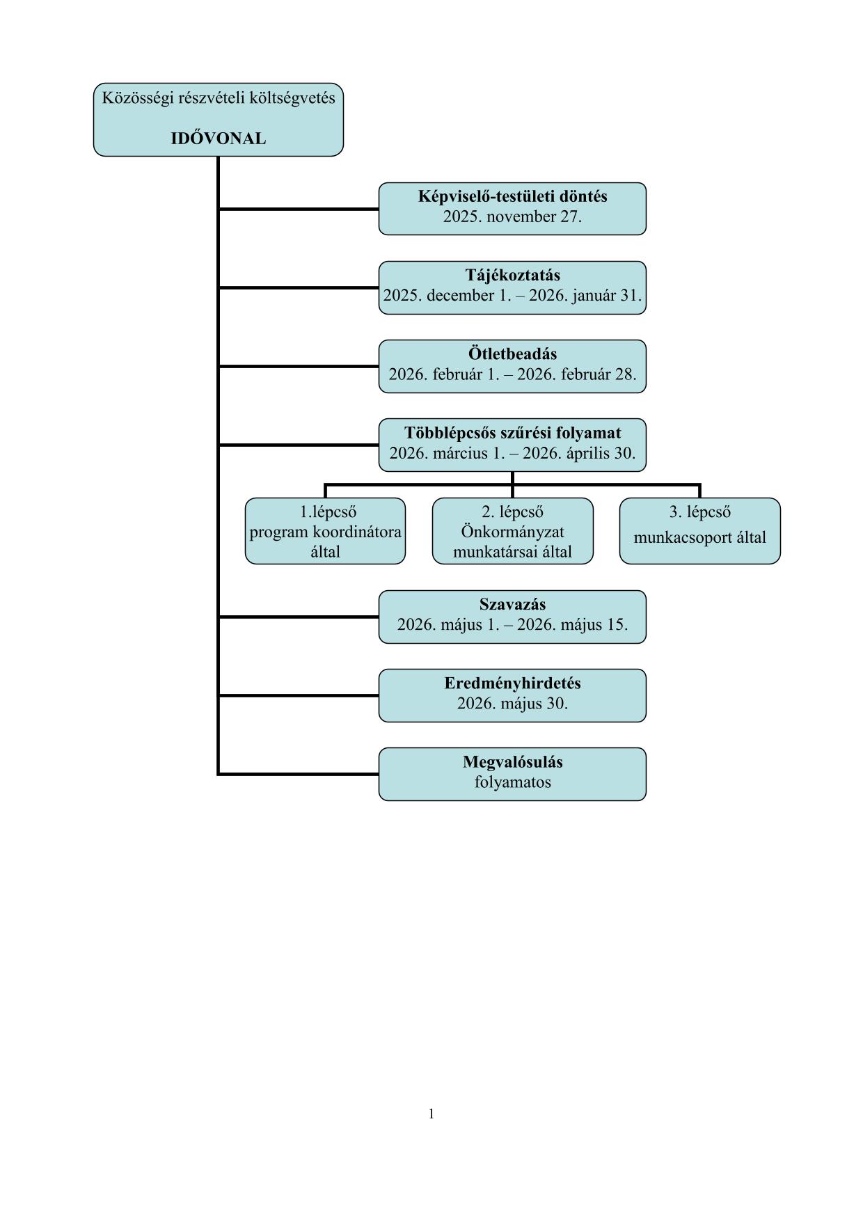 A részvételi költségvetés nyertes ötleteiről az Önkormányzat képviselő-testülete dönt. Ezt követően megkezdődik a korábban már valamennyire megtervezett ötlet előkészítése, amelybe lehetőség szerint bevonjuk az ötletbeadót is.